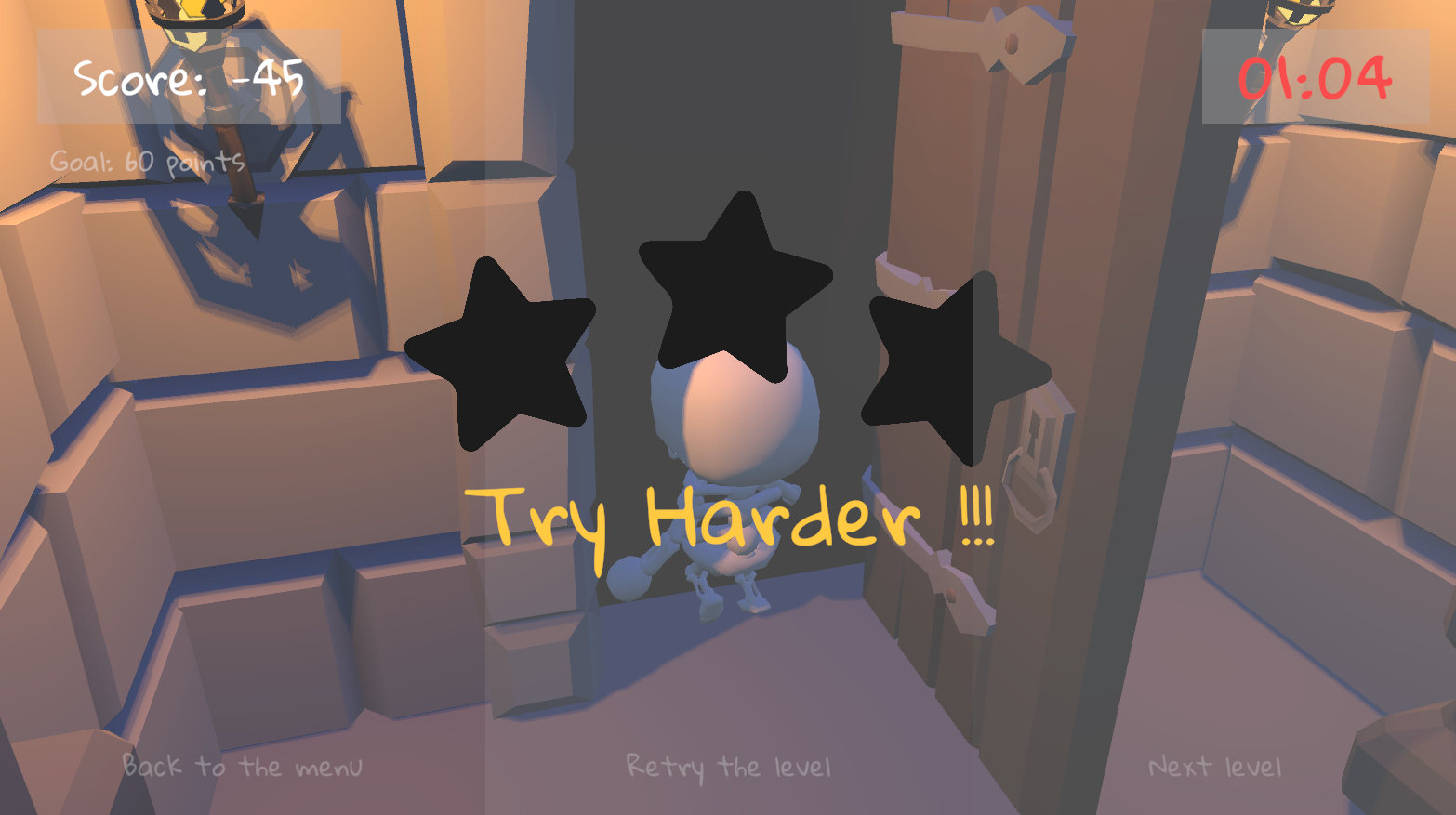 Die Another Try is a 3D puzzle-platformer escape-room game where you play as a dungeon skeleton, or as we call him, 'Kraduk-Kun', who gains self-consciousness after dying too many times in the dungeon's trap, and always comes back in a new body, as he is just a monster in the dungeon system. Re-using his own corpses as his advantage to solve the puzzle, lure the traps, and get across to be free from this damn dungeon!